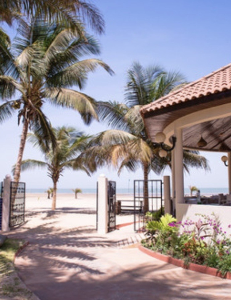 You'll discover an air of tranquility throughout the hotel's lush gardens, while the long, sandy beach, accessed directly from the hotel, is one of the finest in The Gambia.