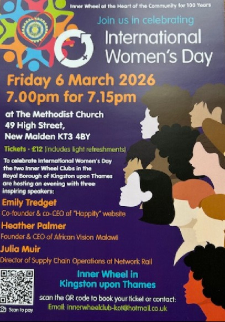 To celebrate International Women's Day, the two Inner Wheel Clubs, a leading women's service voluntary organisation, in Kingston are hosting an evening with three inspiring speakers: