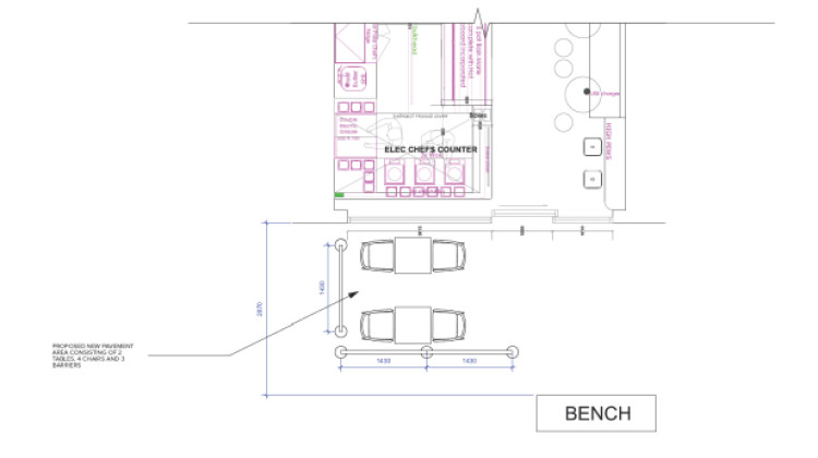 If its application is successful, the eatery plans to have four chairs and three barriers, which will be situated to the left of the entrance.