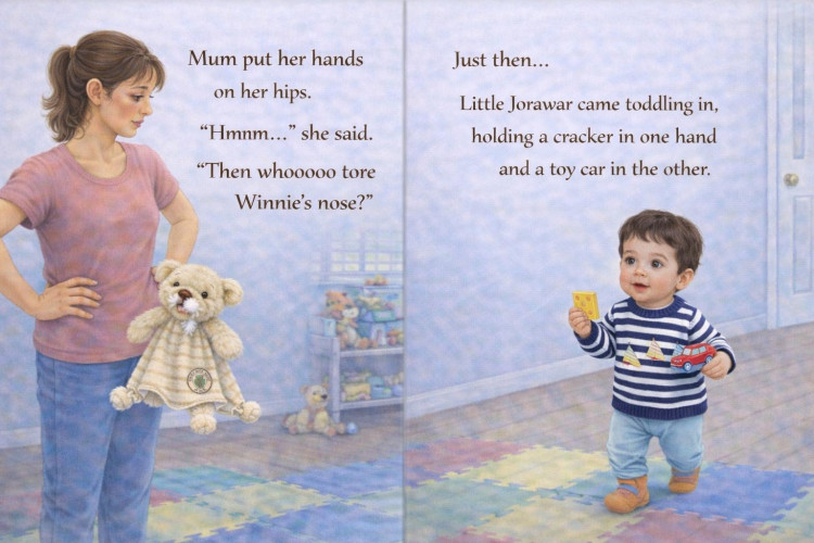Lidder says Wawa and Winnie's Nose is a "gentle, fun story about Jorah and his favorite teddy Winnie.