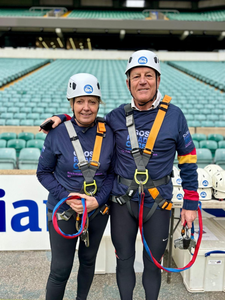 Teddington couple, Margaret Allen and her husband, Rob, successfully completed a wire challenge at Twickenham Stadium in support of local charity, Crossroads Care Richmond and Kingston, on Friday, 17 October.