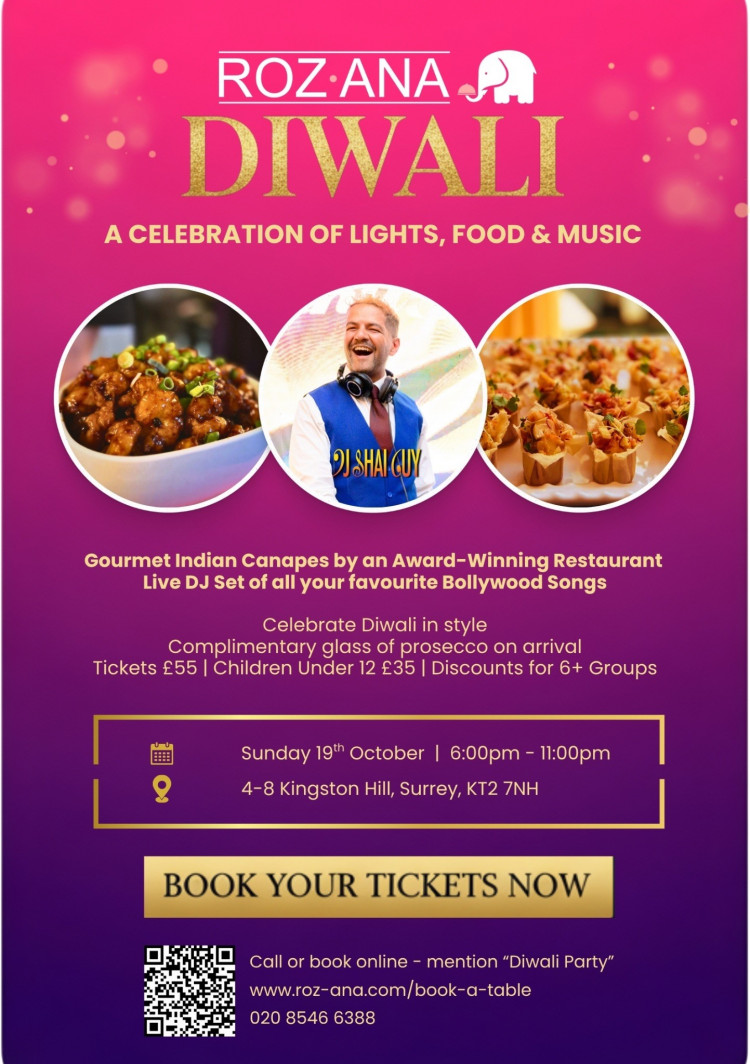 From Diwali's Dazzling Dinner & Dance to festive Christmas feasts, Roz Ana, which is located in Kingston Hill, has your celebrations covered with style and flavour.