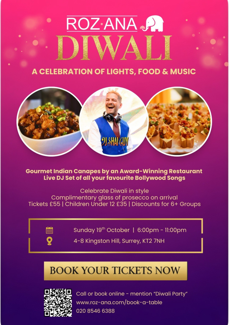 If you love good food, great music and vibrant company, Roz Ana's Diwali Dinner and Dance is the place to be.